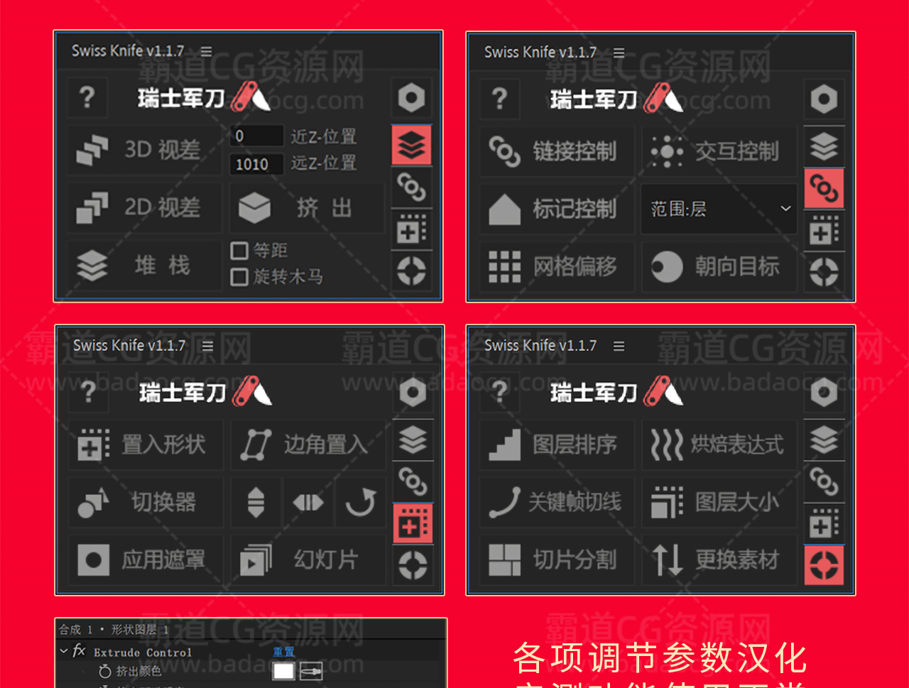 AE脚本:视差交互MG动画工具[瑞士军刀] Swiss Knife v1.1.7 Win汉化版+官方视频教程