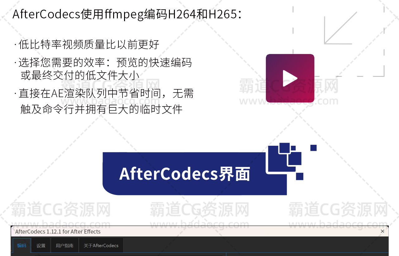 AE_PR mp4 mov视频格式快速渲染插件AfterCodecs v1.12.1 Win中英文版
