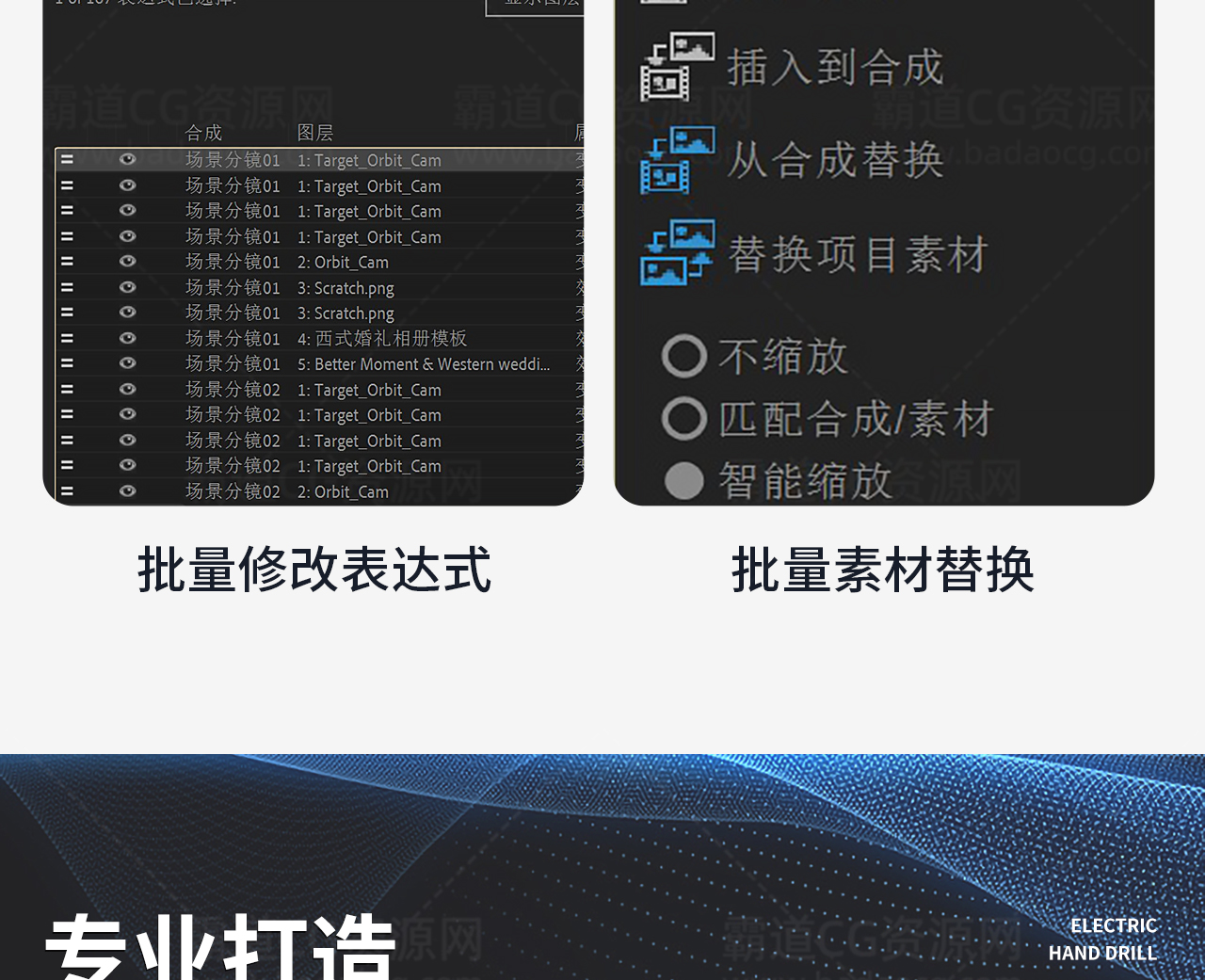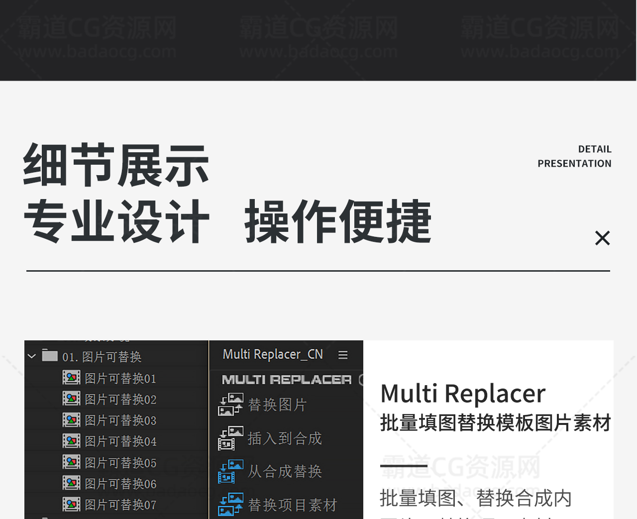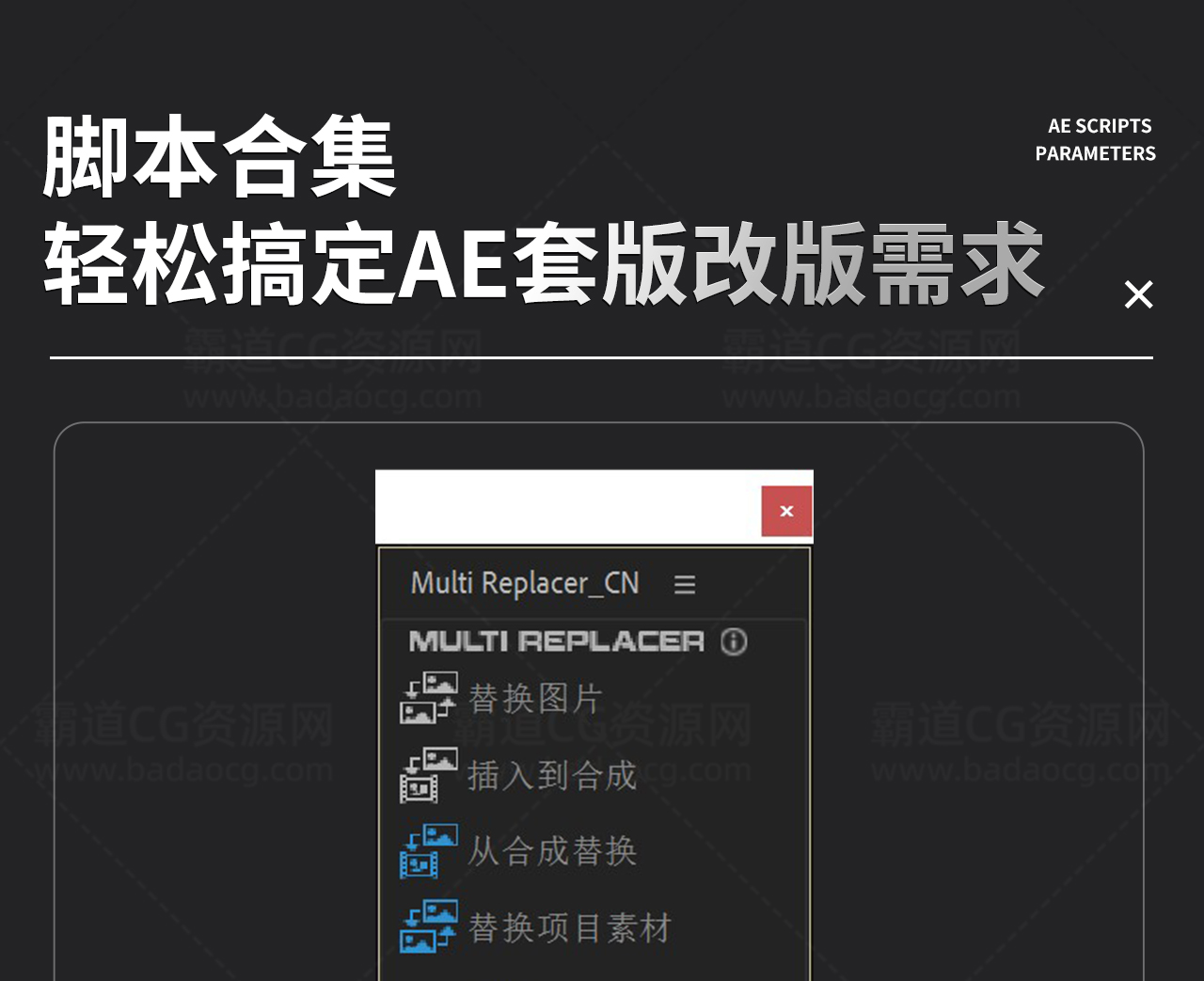 AE脚本: 批量填图替换模板图片Multi Replacer v1.1 中英文版