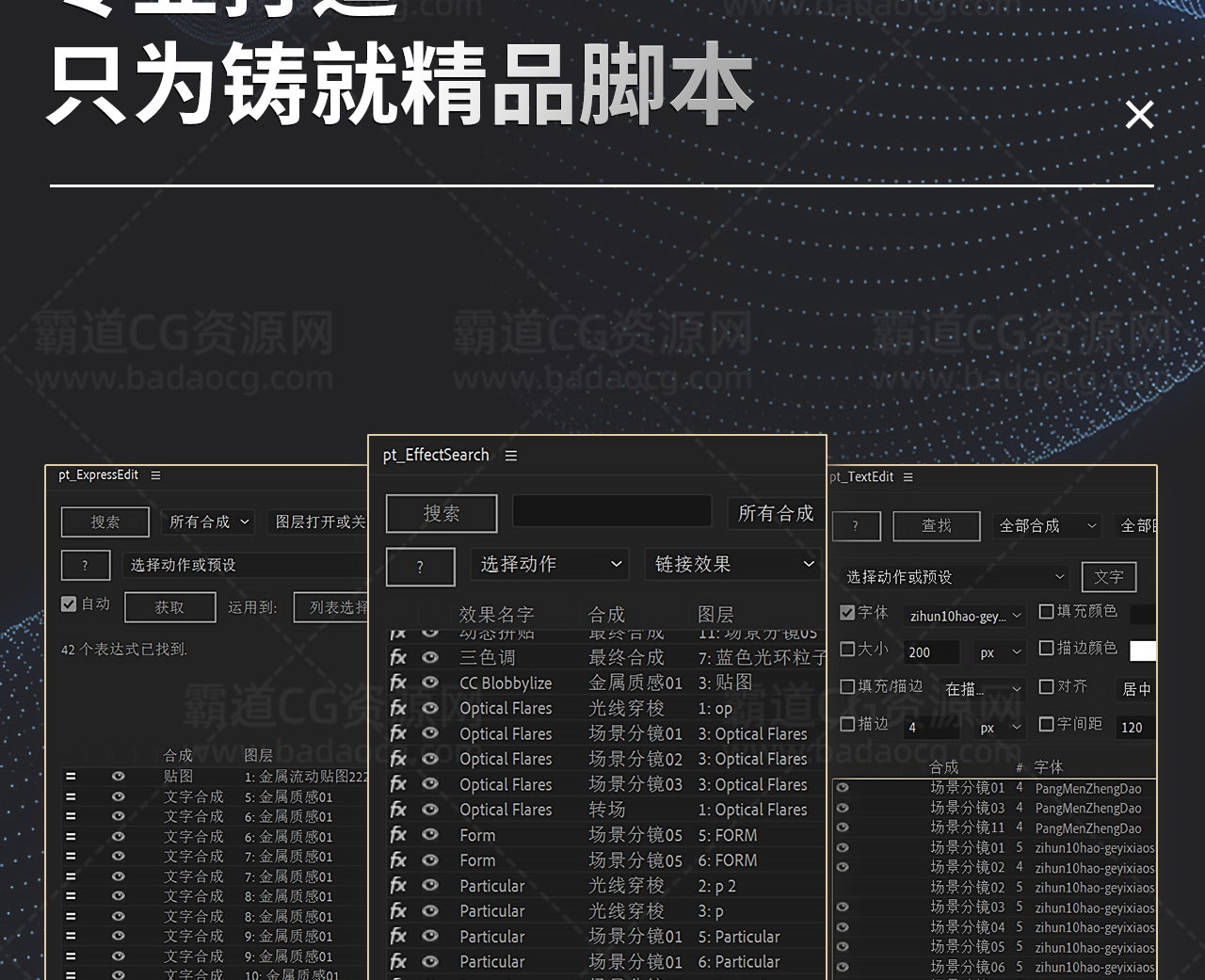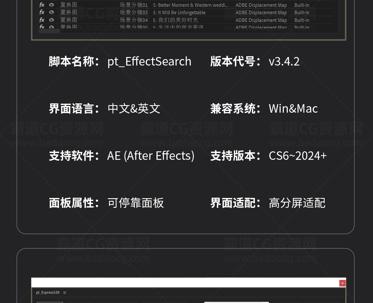AE脚本: 批量效果搜索定位修改管理pt_EffectSearch_v3.42 中英文版