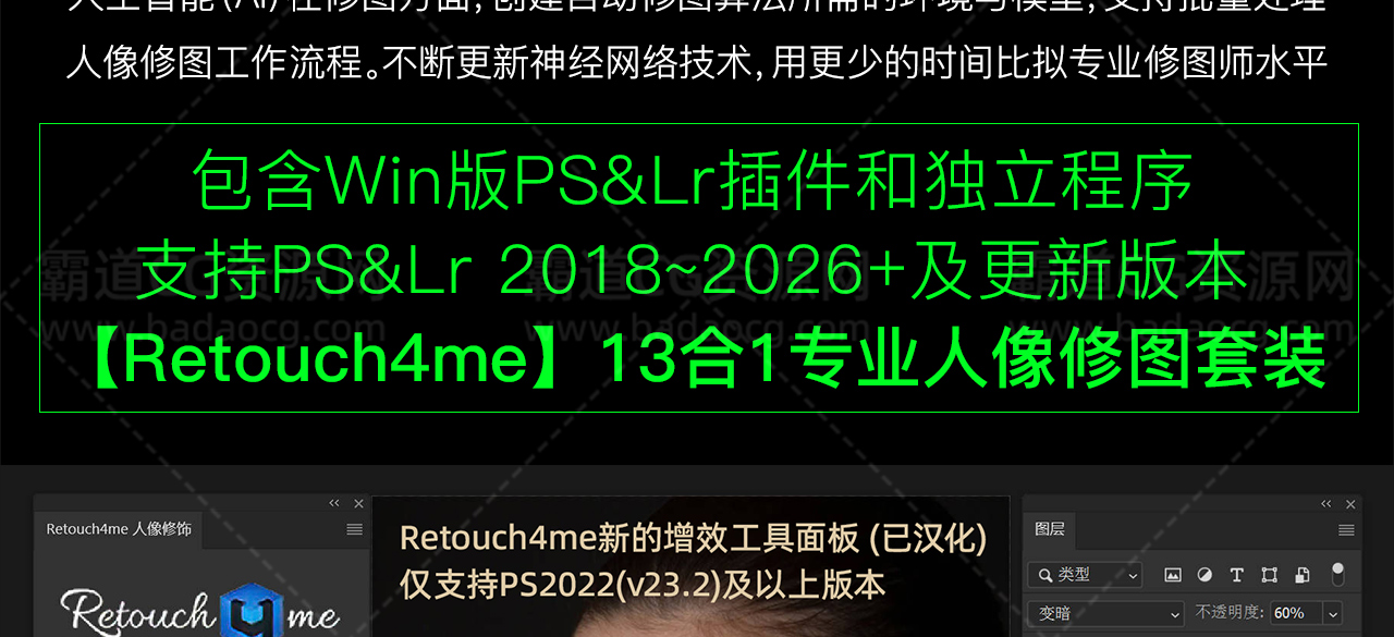 PS&Lr插件:智能人像处理美颜磨皮瑕疵修复套装Retouch4me Win版