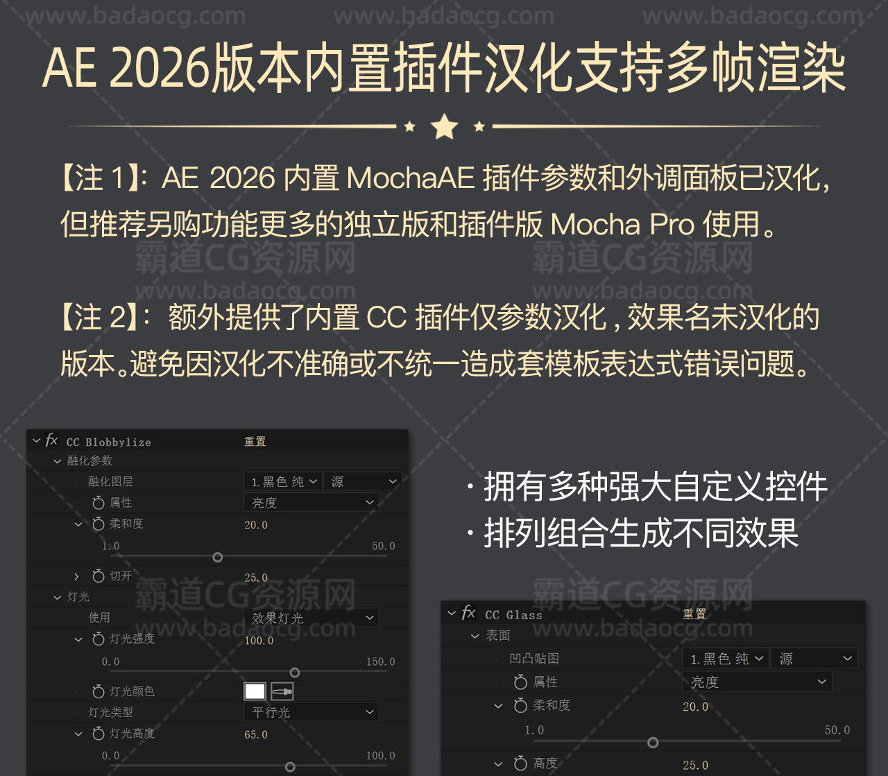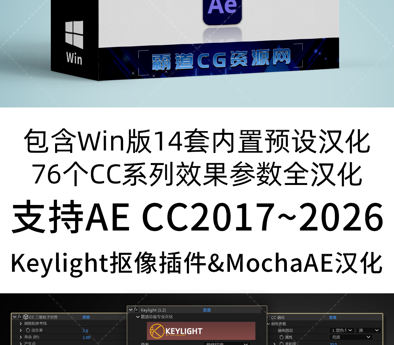 AE 2017~2026内置CC插件、Keylight抠像插件、MochaAE插件&预设汉化包