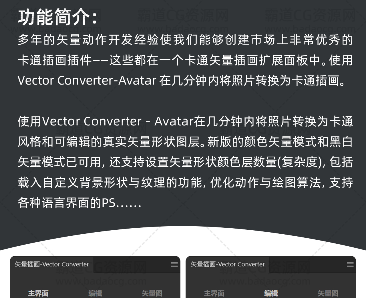 PS扩展:卡通矢量插画创作Vector Converter v2.0 英文版+汉化版
