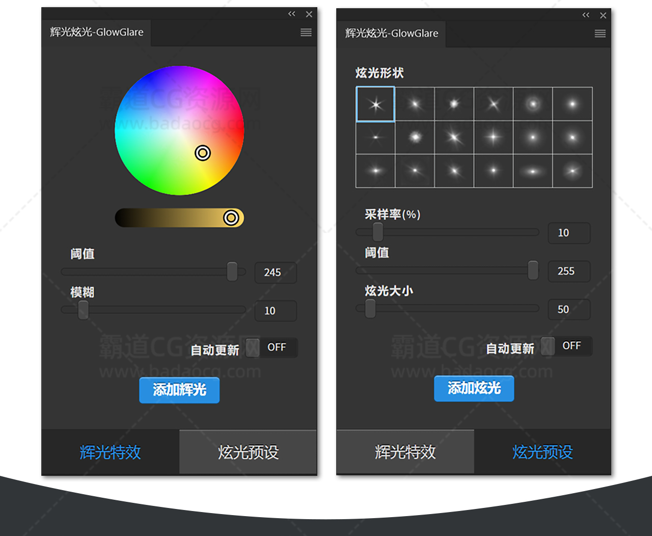 PS扩展:辉光炫光效果Glow&Glare 汉化版