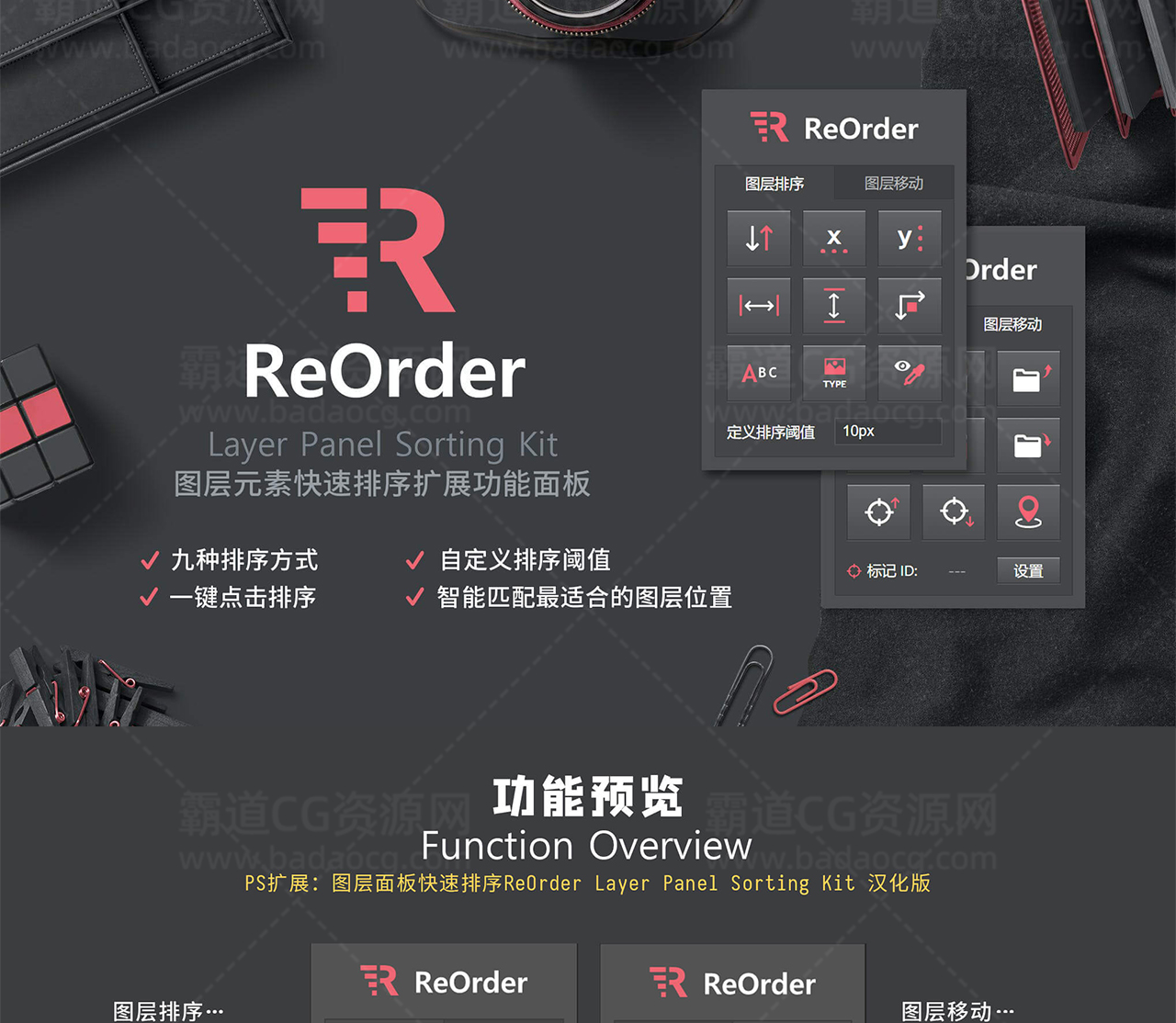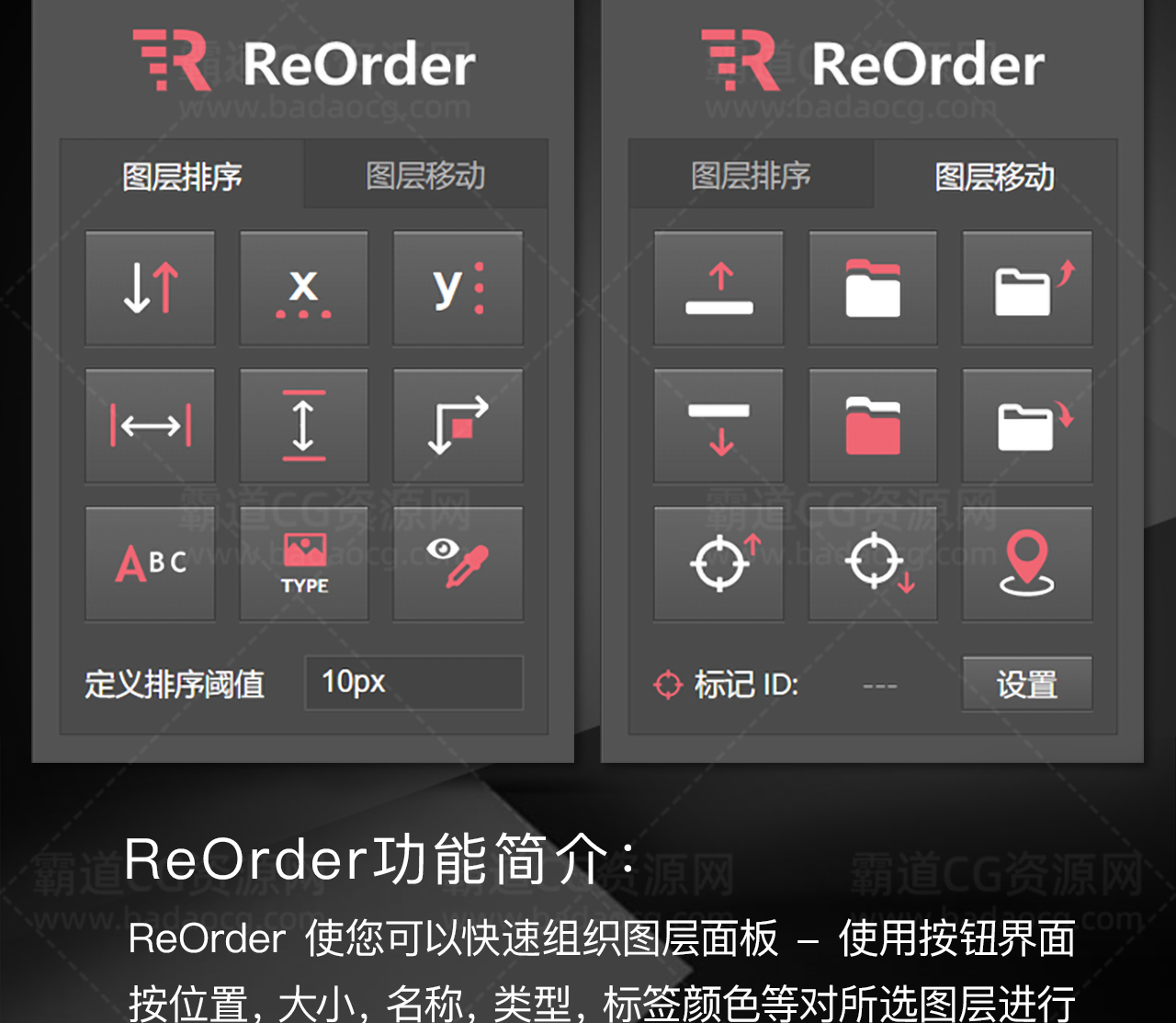 PS扩展:图层面板快速排序ReOrder-Layer Panel Sorting Kit 汉化版