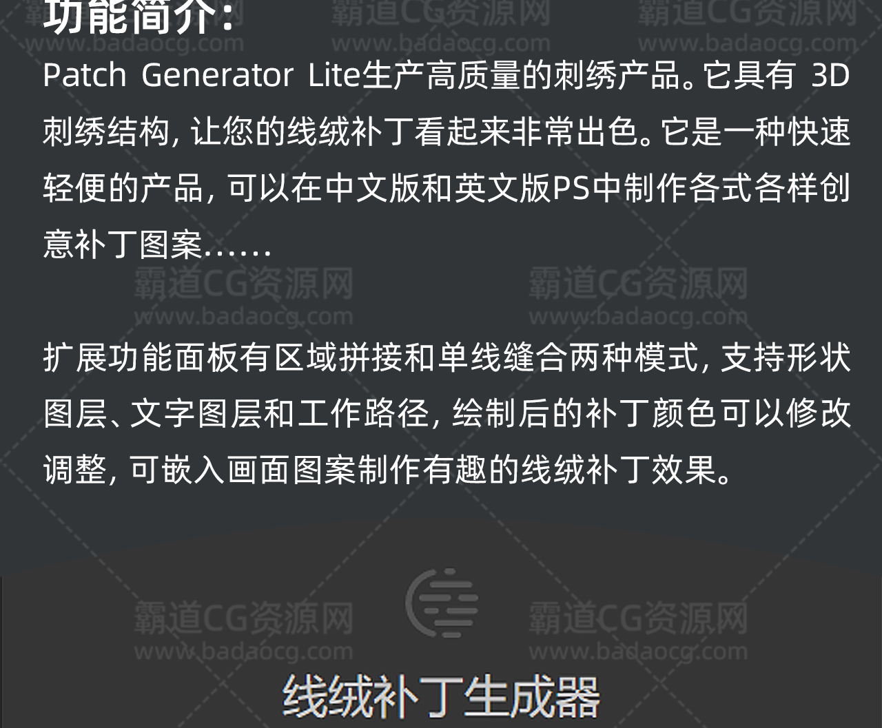 PS扩展:线绒补丁效果生成Patch Generator Lite Win汉化版