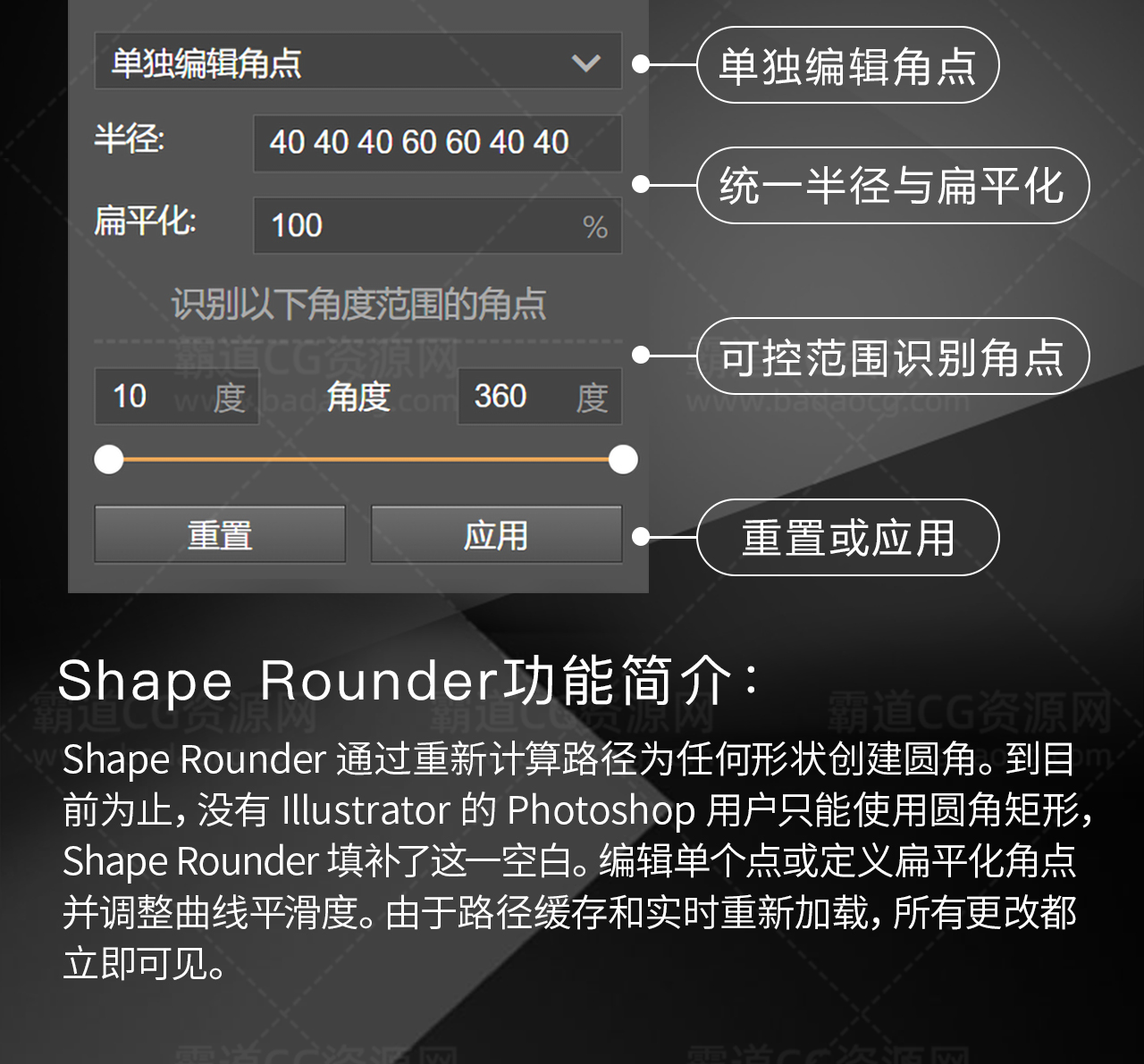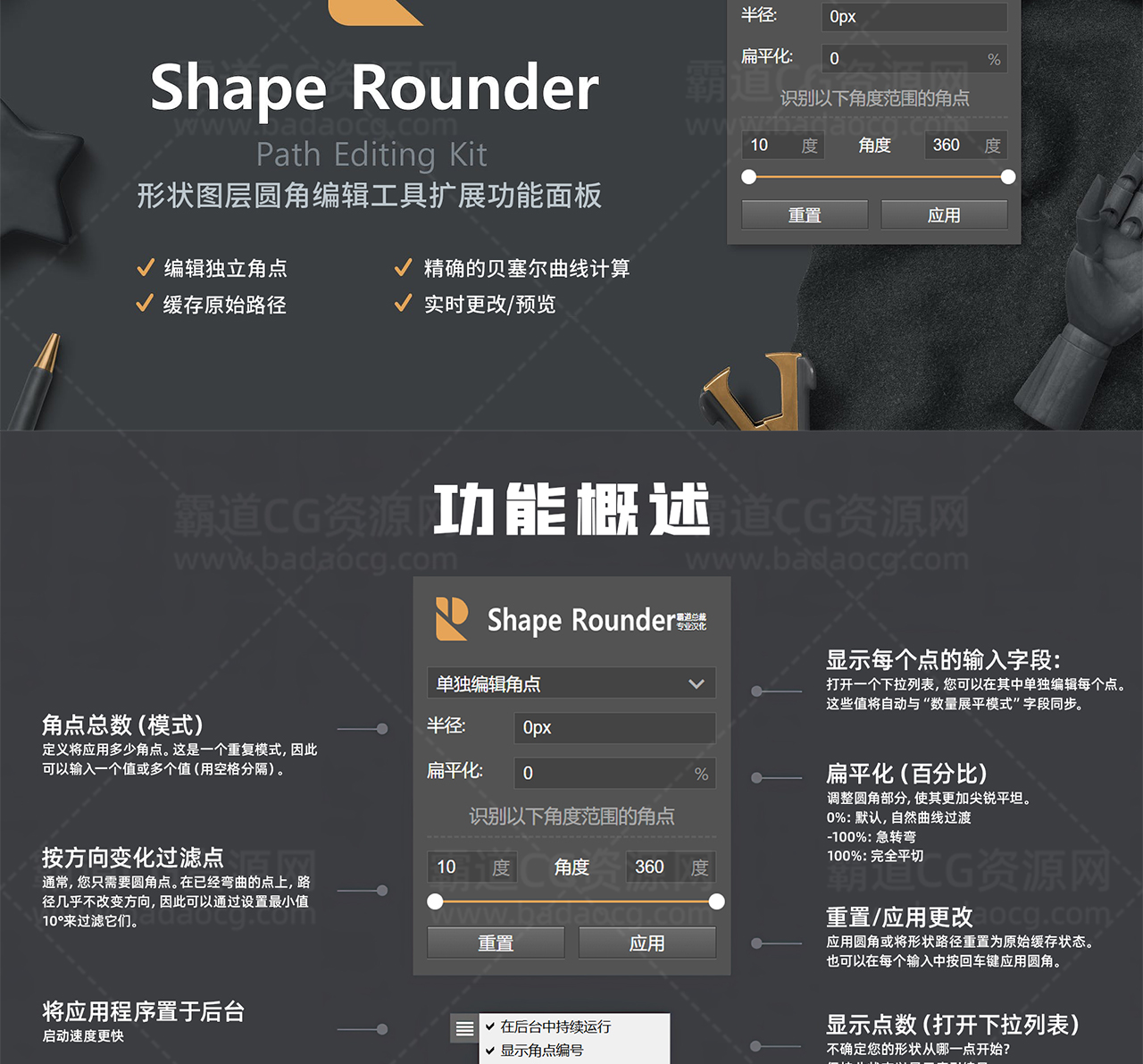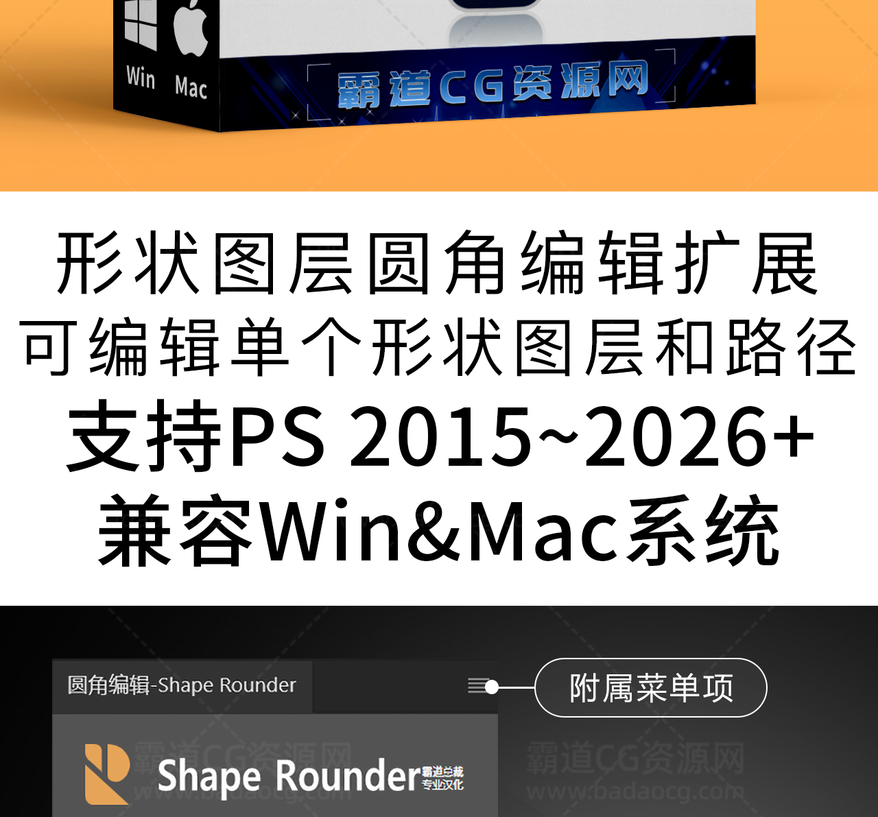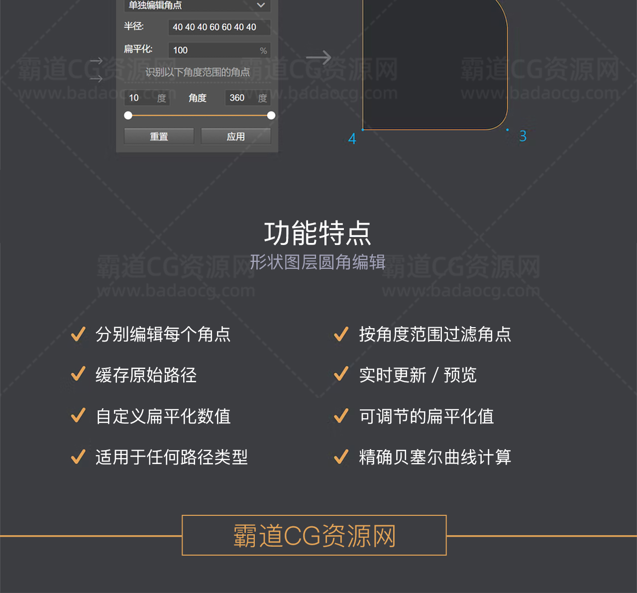 PS扩展:形状图层圆角编辑Shape Rounder-Path Editing Kit 汉化版