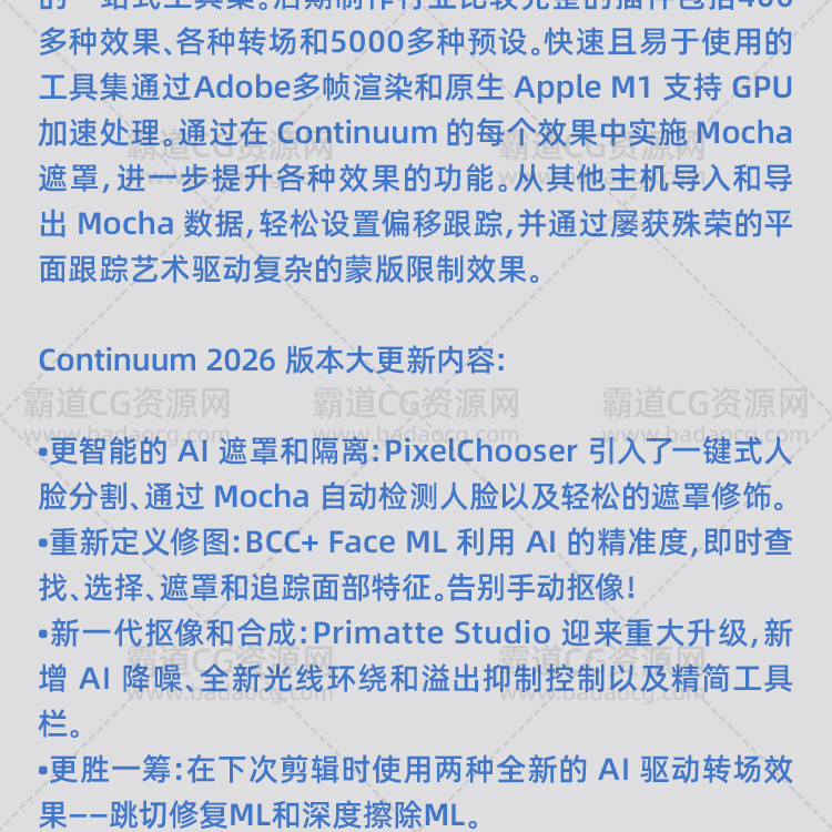 AE_PR_OFX BCC视觉特效幻影粒子插件套装Continuum 2026.0.0 Win英文版