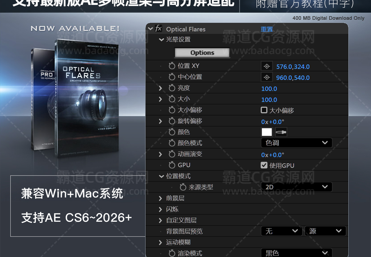 AE光学耀斑插件Optical Flares v1.3.8 Win一键安装汉化版