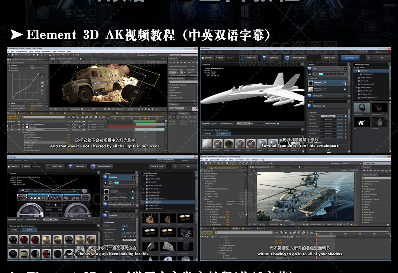 AE三维元素插件Element 3D模型+材质+贴图 预设包(37GB+)