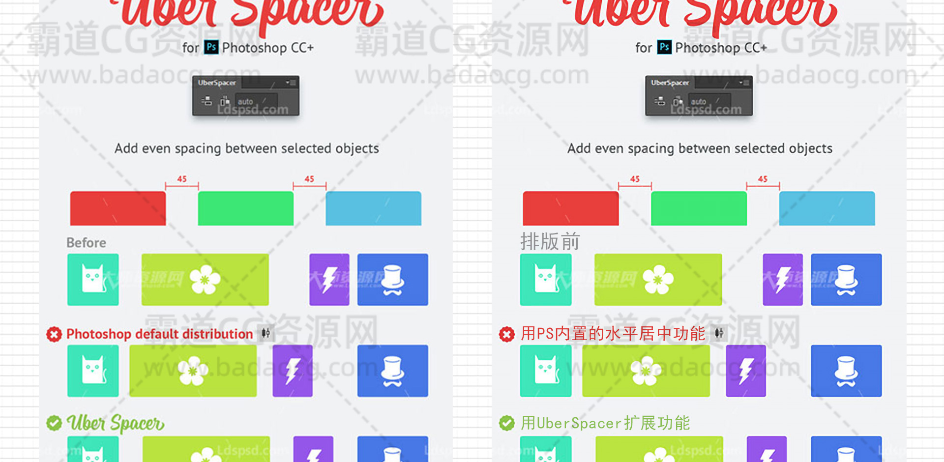 PS扩展:等间距对齐分布排列UberSpacer v1.0