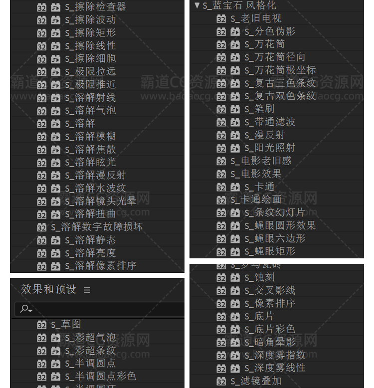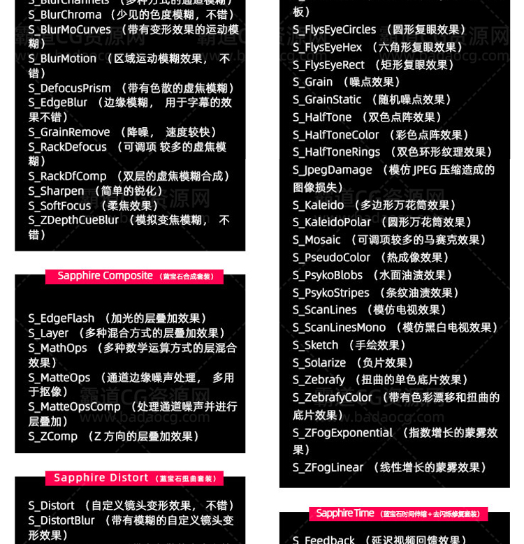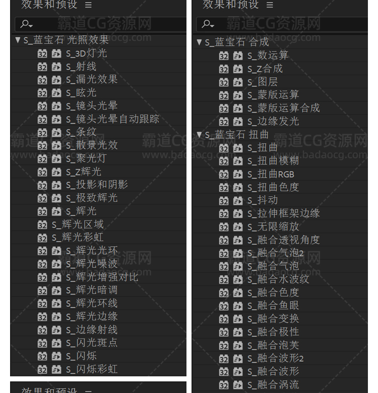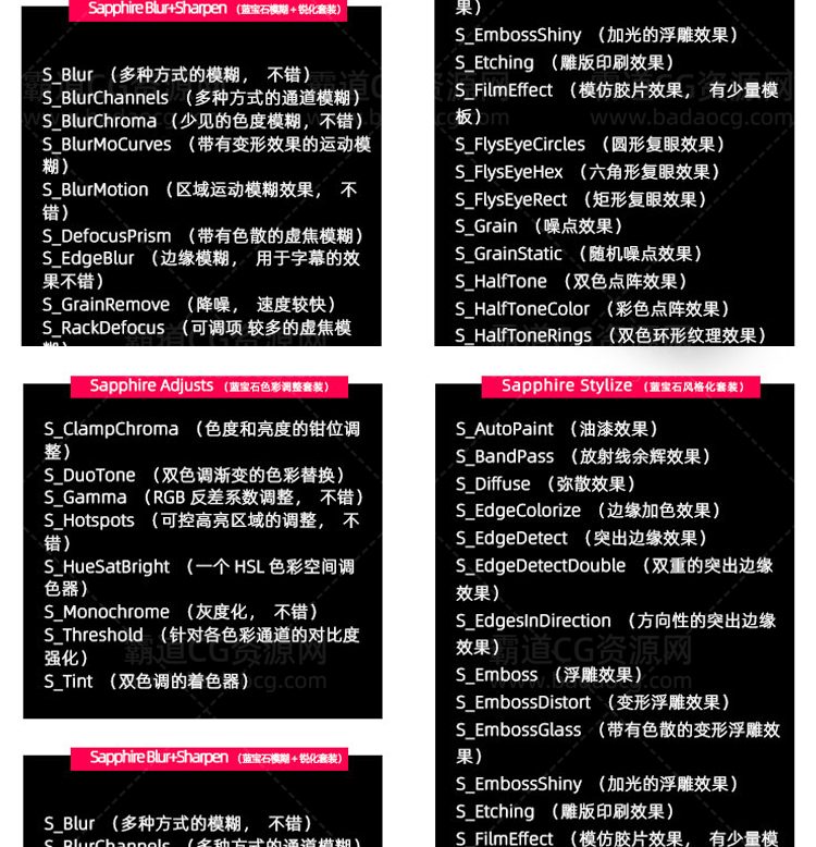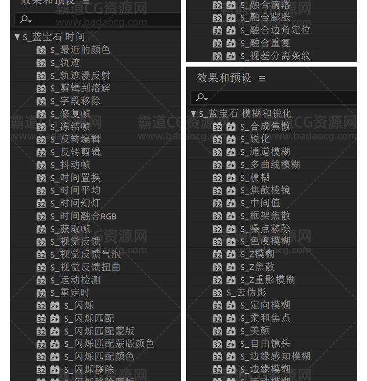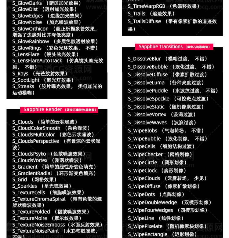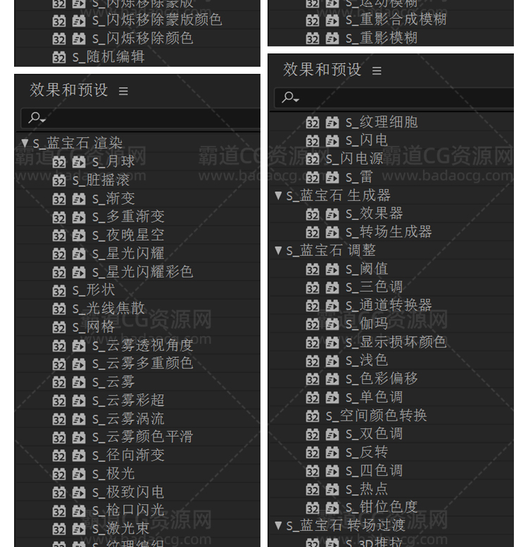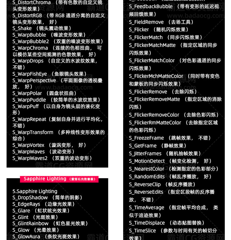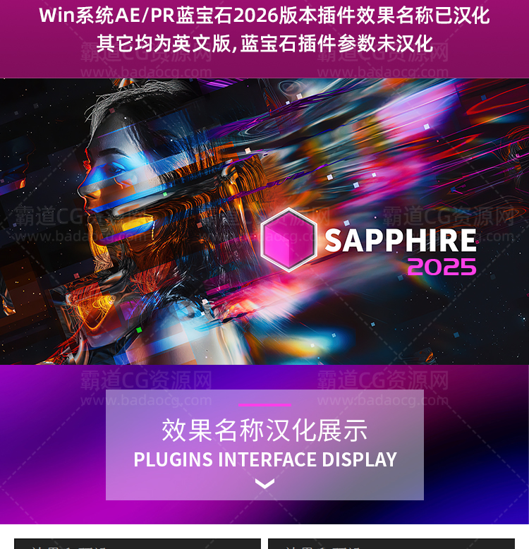 仅Win版AE&Pr蓝宝石插件效果名称汉化参数和外调面板是加密字符串无法汉化,达芬奇版和其它Mac版蓝宝石插件均为全英文版。