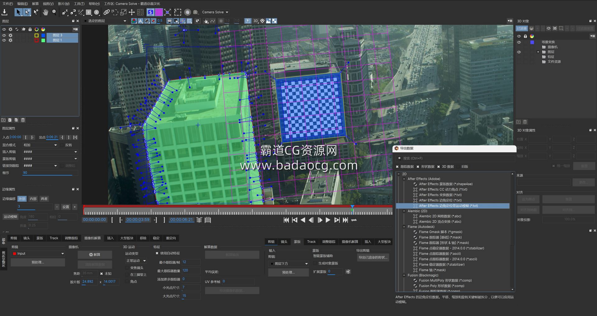 - 优化解算工具:简化的工作流程可帮助您清理场景,无需重新进行整个相机或物体解算。只需删除不稳定的或不需要的 3D 特征,即可保持场景稳定并获得更精确的结果。